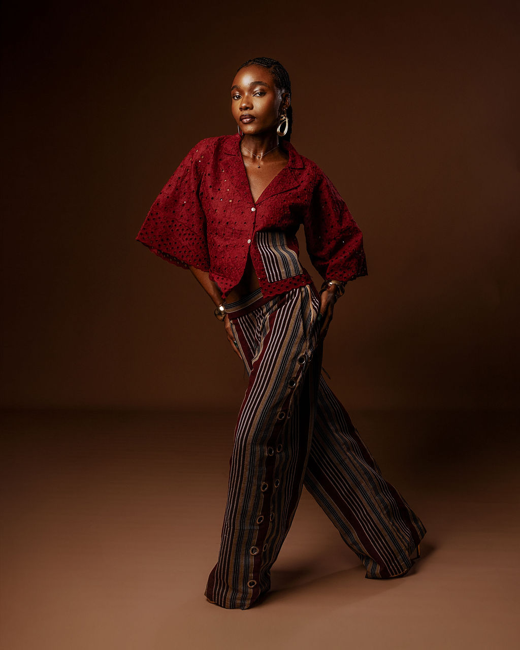 & Free ShippingA sculpted expression of elegance and heritage. This Ofi two-piece set — featuring a structured top and tailored trousers — is perfect for ceremonies, services, or formal events that call for quiet sophistication. Each stitch embodies timeless craftsmanship and polished confidence.