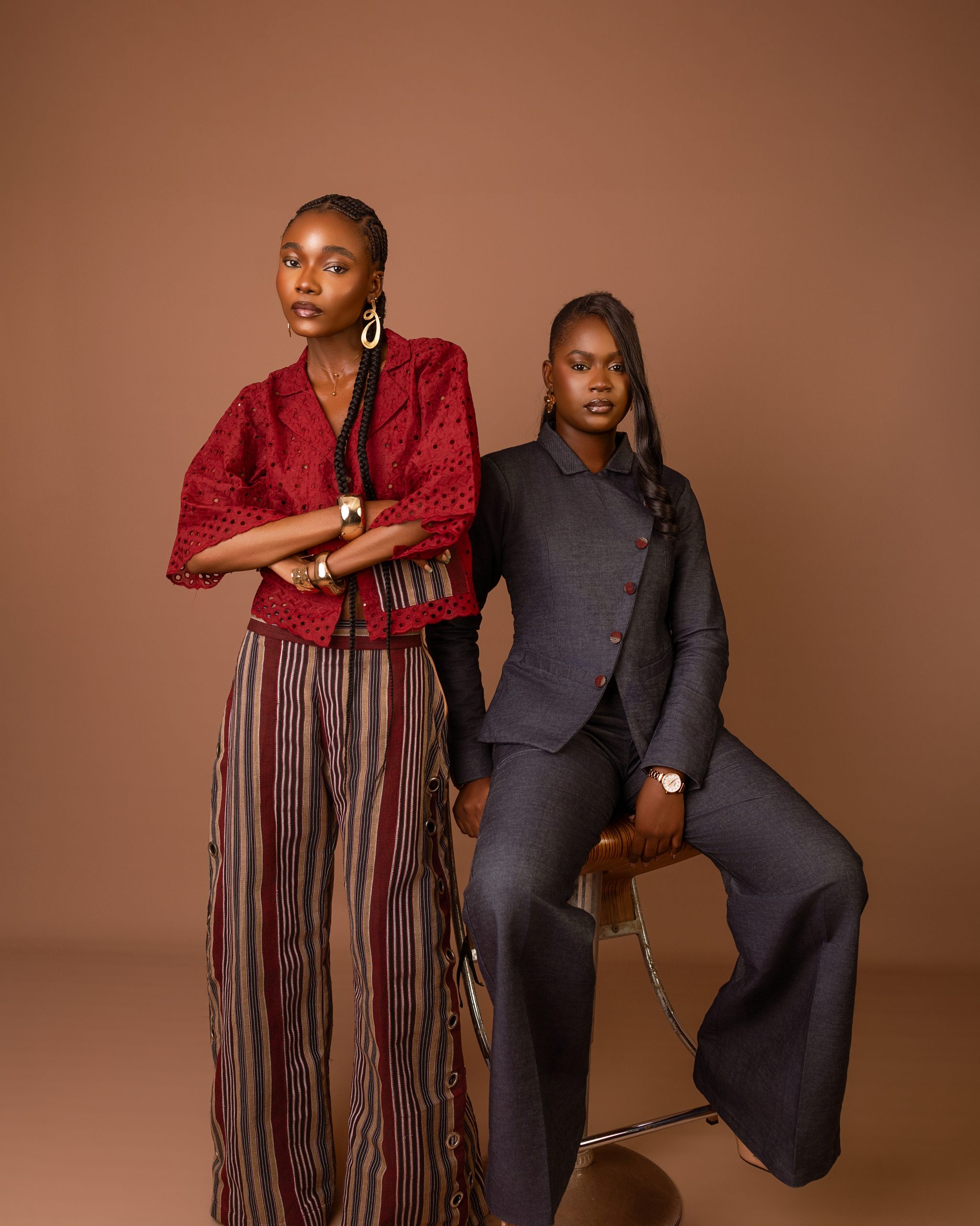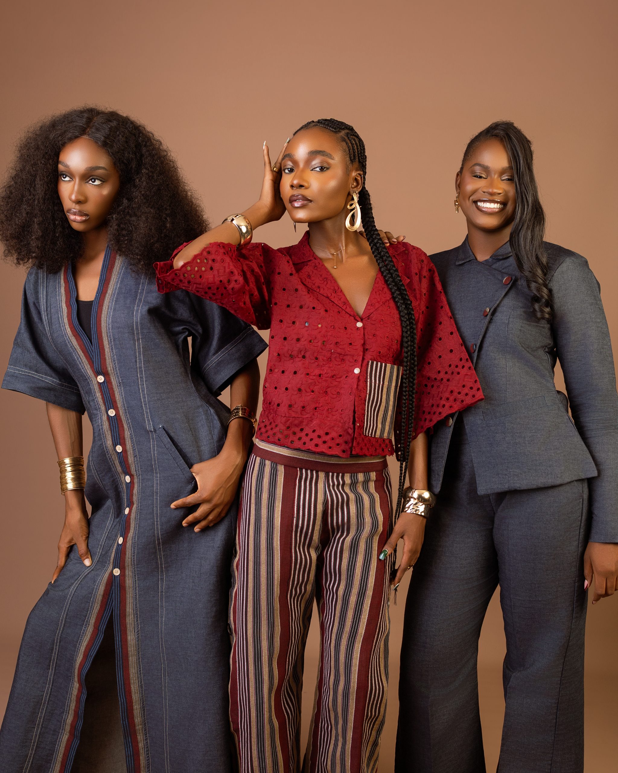 Peekok’s Heritage Fusion Capsule unites three signature pieces — the Structured Denim Suit (£130), Sculpted Denim Dress (£100), and Ofi Two-Piece Set (£125) — bound together by exquisite Ofi detailing that narrates strength and heritage through design.